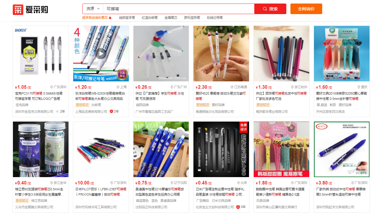 今天關于可擦筆的冷知識就介紹到這里啦,如果你想知道更多,歡迎來百度愛采購平臺搜索【可擦筆】,這里有很多支持可擦筆訂做的廠家哦!